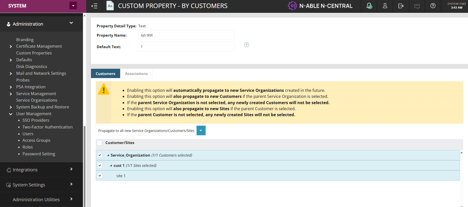 - Deselecting anything from the Customer/Sites will remove the property from that Org Unit, while selecting something that was not will add the property to that Org Unit